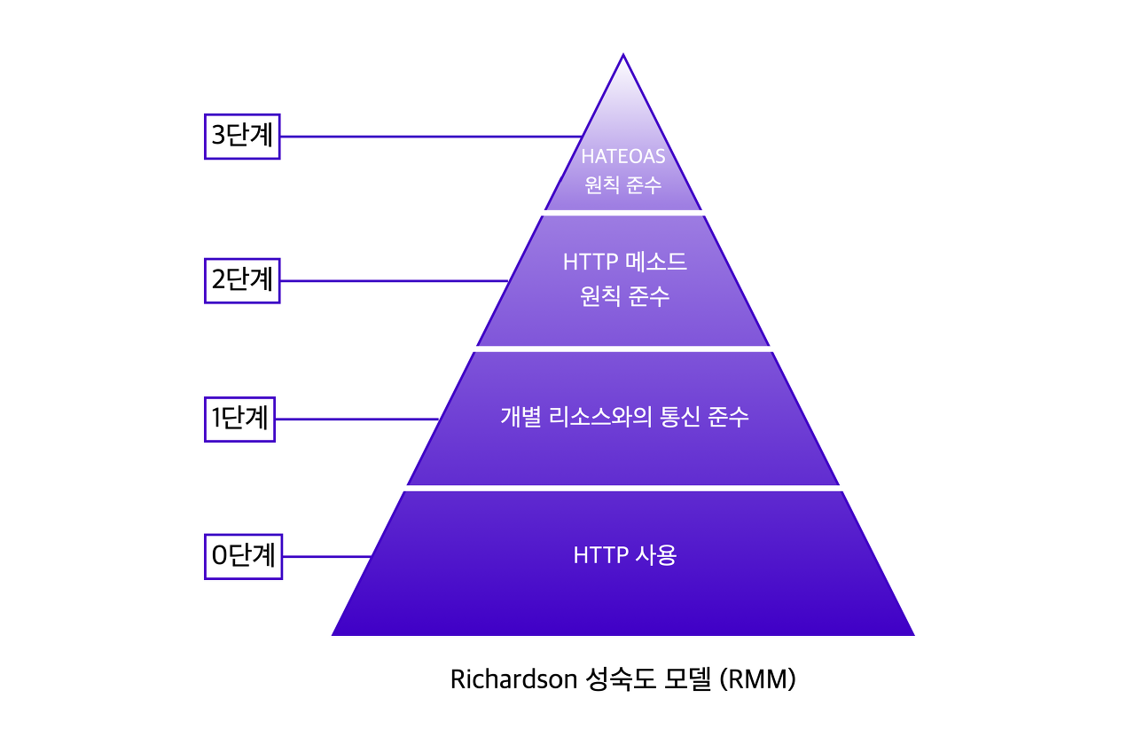 REST 성숙도 모델은 총 4단계(0~3단계)로 나누어집니다. 모든 단계를 충족해야 REST API라고 부를 수 있다고 하지만 2단계까지만 적용해도 좋은 API 디자인이라고 볼 수 있습니다.